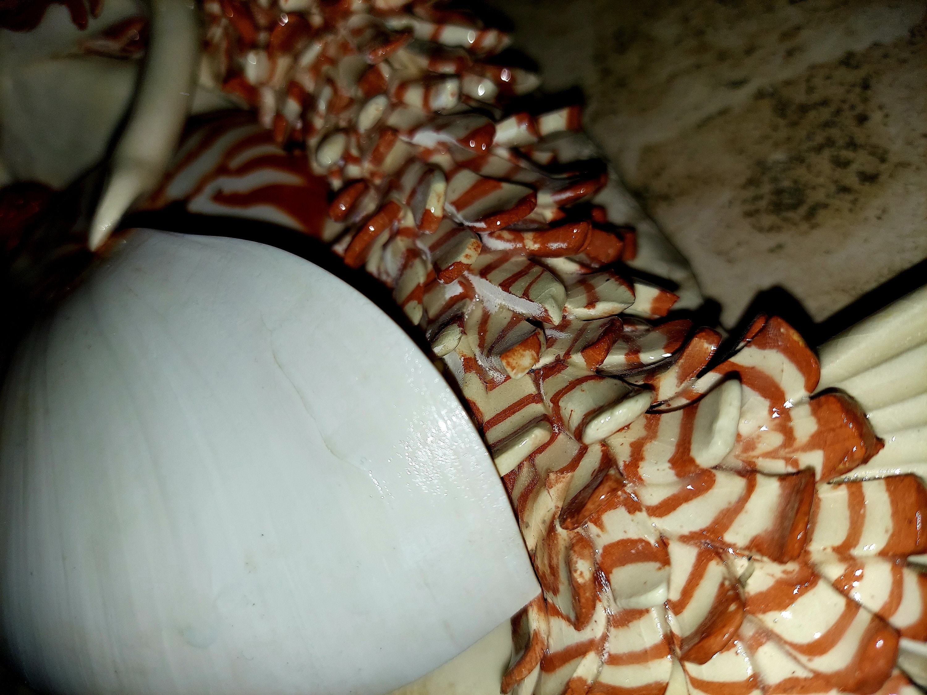 No colored glazes were utilized, just a few coats of clear glaze in order to attempt and match the prints on the sliced Chambered Nautilus.